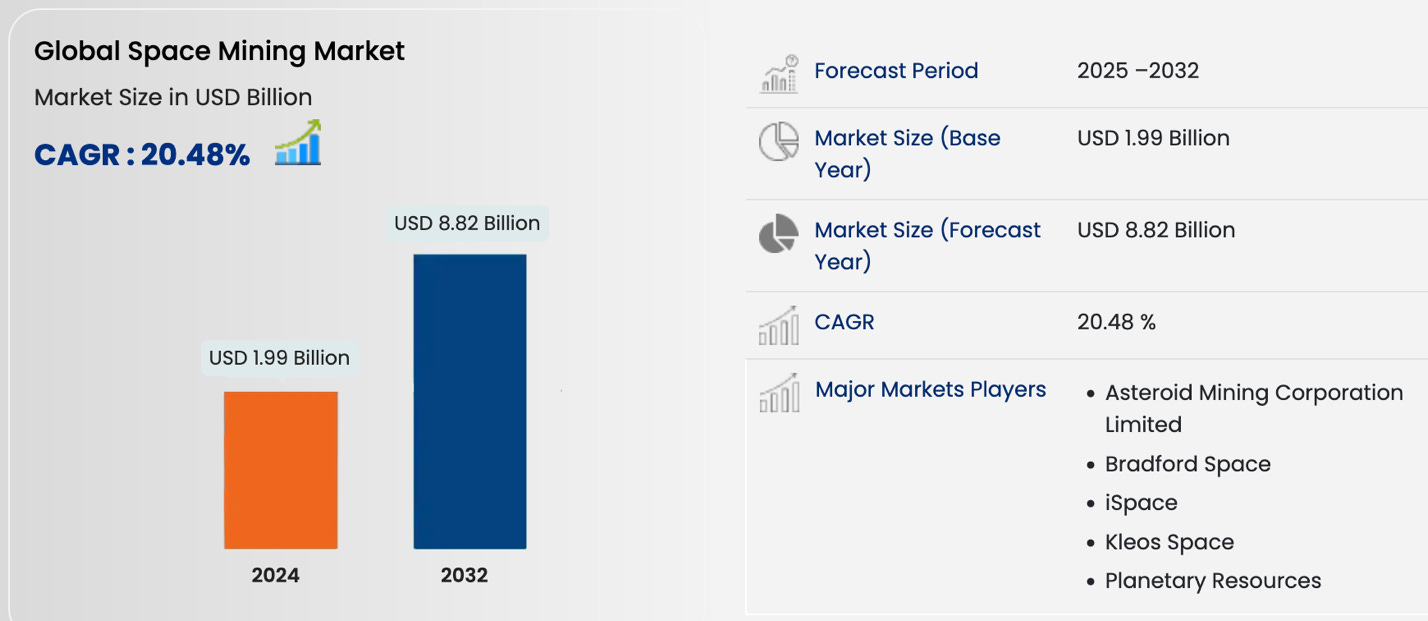 The estimates for the value of the cislunar economy are less clear but currently stand at $8.8 billion by 2032 on a 20.5% CAGR according to Data Bridge Market Research. This estimate is mostly for cislunar mining, but for the design and build of supporting equipment like autonomous prospecting and mining facilities. The exact value is unclear, but some estimates are shockingly high provided that there is a sustainable way to mine rare earth elements and return them to earth. A lot of technical and regulatory questions must be answered before this becomes reality, but the potential is there, and companies are already designing and building for this possibility.